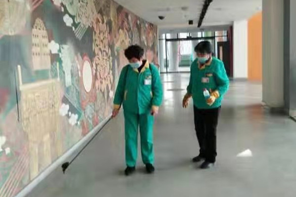 家住濟南長清的57歲的段耀美和53歲的黃秀芹是學(xué)校長清校區(qū)的保潔員工,日常負責辦公樓的清潔工作。平日里她們工作認真,待人熱情,經(jīng)常得到教職工們的夸贊。這個假期,這對姐妹花主動放棄休假,第一時間加入到校園衛(wèi)生防疫隊伍中。長清辦公樓的走廊上、電梯間、廁所里……經(jīng)常看到她們戴著口罩,背著消毒用具,忙碌工作的身影。在管轄衛(wèi)生區(qū)域,她們確保每日消毒、不留死角。當被問到工作累不累時,她們靦腆地笑著說:“確實比平常累一些。但我們住得近,我們多干點兒,遠路的同事就能安心在家過年!”