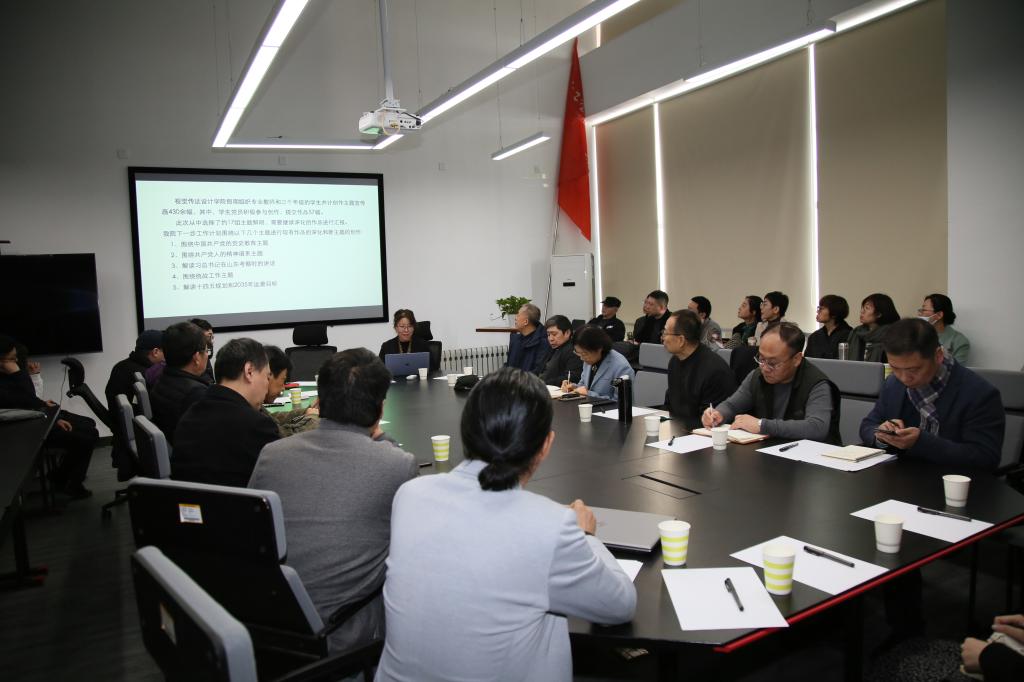3月12日,院長潘魯生先后到造型藝術學院、視覺傳達設計學院、數字藝術與傳媒學院調度指導“慶祝建黨一百周年 為人民而設計”主題創(chuàng)作。副院長李新、董占軍,黨委委員、黨委宣傳部部長韓文濤參加調研。