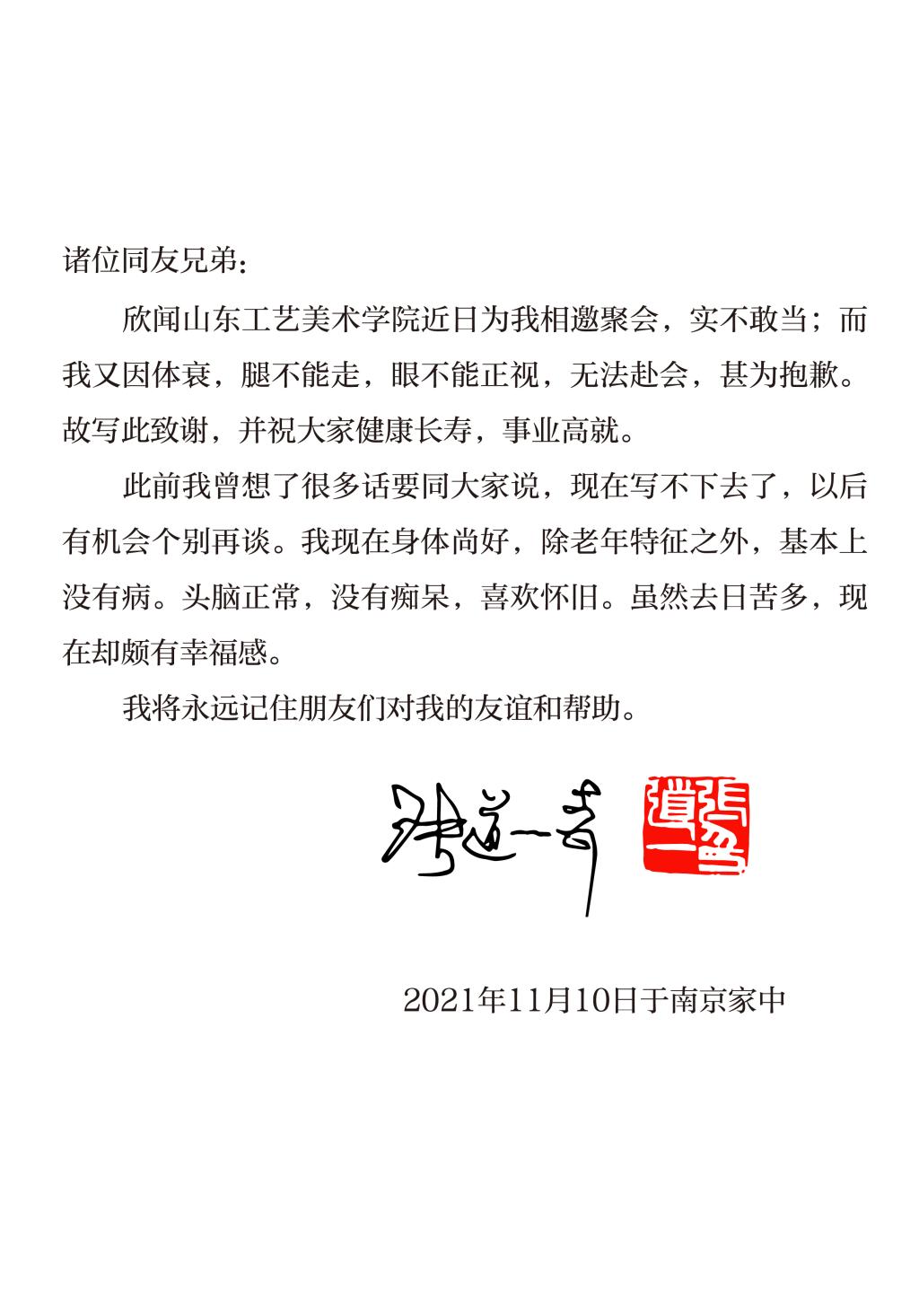 潘魯生表示,張道一先生的為師之道、為學之道、為人之道,都融入了他一直為之奮斗和奉獻的傳道治學、立德樹人的藝術教育事業,可謂,學高為師,身正是范,一以貫之,高山仰止!