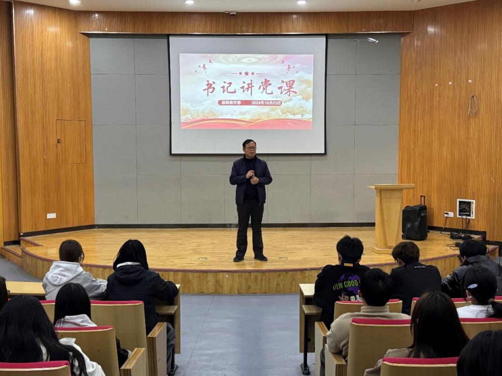 為深入學(xué)習(xí)貫徹黨的二十屆三中全會(huì)精神,不斷提高青年學(xué)生政治素養(yǎng),引導(dǎo)青年學(xué)生不忘初心、堅(jiān)定理想信念。10月23日,基礎(chǔ)教學(xué)部組織開(kāi)展“書(shū)記講黨課”主題教育活動(dòng)。本次黨課由輔導(dǎo)員徐茜婭主持,基礎(chǔ)教學(xué)部黨委直屬黨支部書(shū)記李忠誠(chéng)主講。