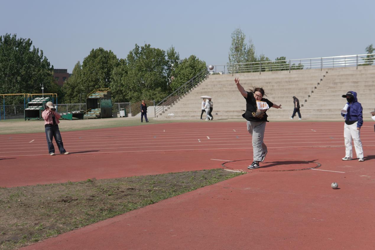 在鉛球競技場上,基礎教學部的選手們緊握鉛球,深吸一口氣,將全身的力量匯聚于這一關鍵動作之中。隨著手臂的流暢擺動,鉛球在空中描繪出一道動人的曲線,最終穩健地觸地,揚起一片塵埃。