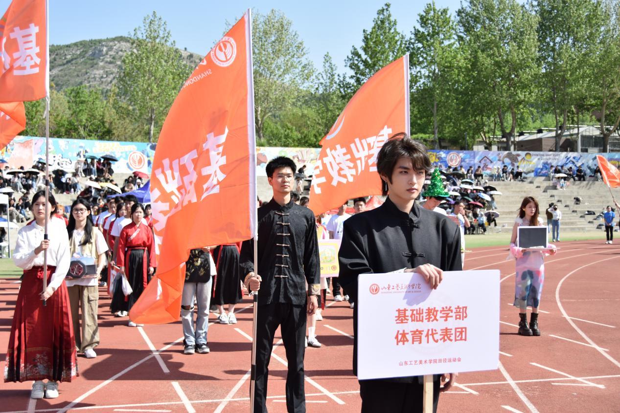 基礎教學部的運動員們步伐堅定、口號響亮,充分展現了新時代學子的風采。隊伍前方,各專業代表手持同學們精心制作的手工道具,分別凸顯了船舶設計的流線之美、影視藝術的夢幻之感、雕刻藝術設計的匠心獨運、視覺傳達設計的時尚元素以及環境藝術設計的和諧氛圍,彰顯出專業特色和精神風貌。在陽光的照耀下,這些道具熠熠生輝,引領整個隊伍闊步前行。