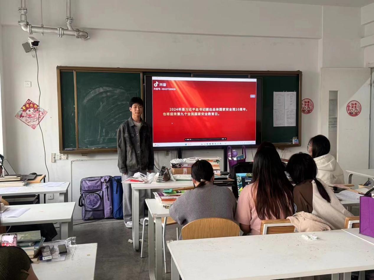 在活動中,各班團支書帶領本班同學觀看了有關“總體國家安全觀”的視頻,結合視頻為同學們講解了國家安全的重要性以及如何防范和應對各種安全威脅。通過生動的案例講解,學生們深入了解了國家安全相關知識,增強自身的國家安全意識。