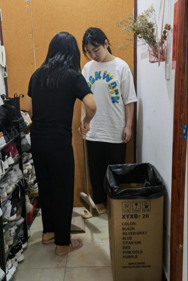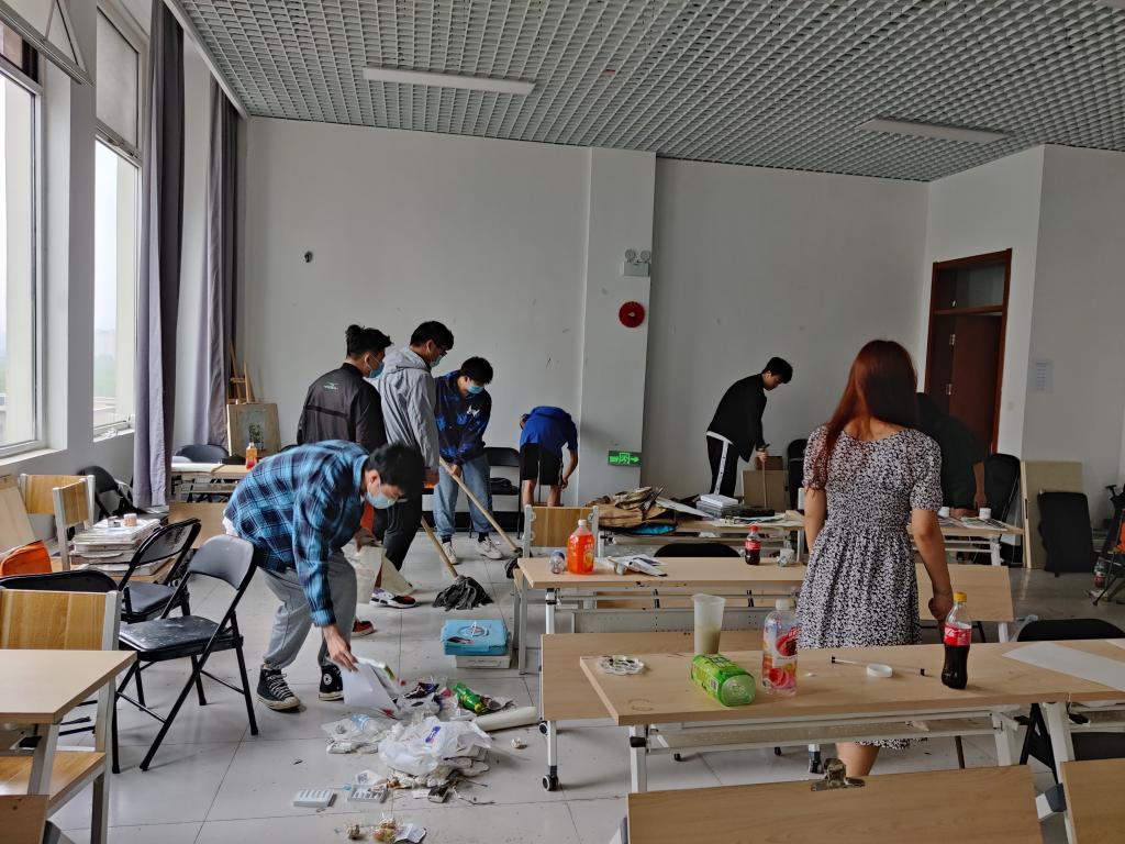 各班的學生干部主動帶領同學,承擔起了教室衛生打掃的工作,大家一起勞動,歸攏畫稿、擺放桌椅、清潔地面,在勞動過程中培養同學間的團結協作意識。