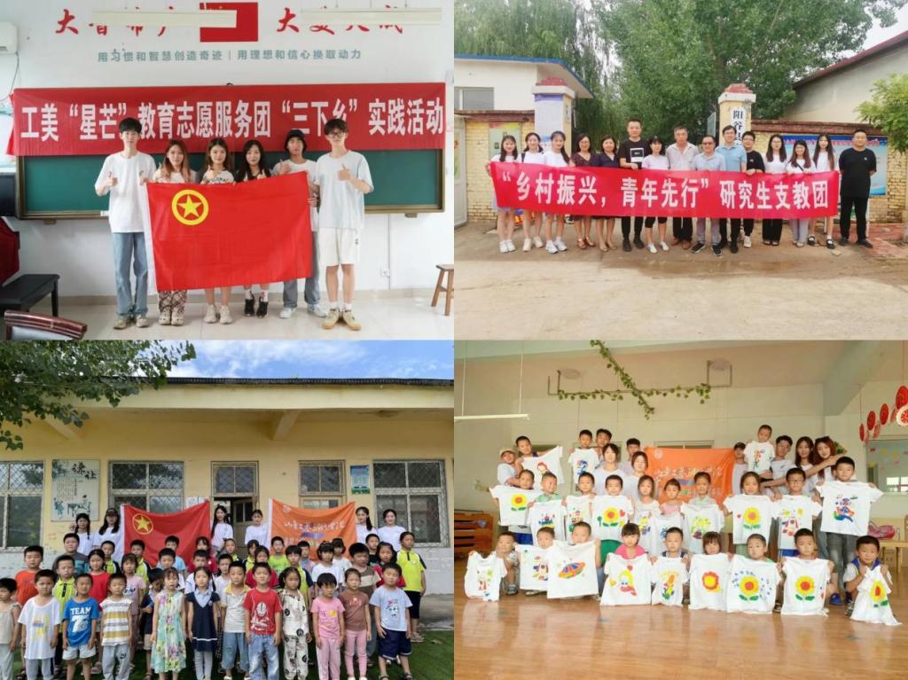 工業設計學院“星芒”教育志愿服務團到濰坊市寒亭區高里鎮東南孫村中進行藝術教育文化志愿服務,隊員們從藝術知識的宣講、繪畫知識的實踐、黨史知識的科普等方面來進行實踐活動,目的在于要讓村民更好地了解藝術,促進當地美育發展。服裝學院教育關愛服務團積極開展“牽手關愛”志愿服務項目,用舞蹈為大家帶去了無盡歡樂,充分發揮了自己的專業才能,為社會服務的同時體現自身價值?!班l村振興 青年先行”研究生支教團前往我校第一書記幫扶村聊城市陽谷縣李臺鎮王集新村,拉開了藝術支教公益活動的序幕,用自己的綿薄之力,讓希望播撒到鄉村的田間地頭。