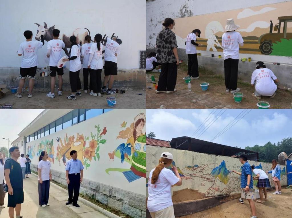 由校學生會等主要學生骨干組成的匠心志愿服務隊,奔赴陽谷縣李臺鎮中心衛生院和我?!暗谝粫洝睅头龃尻柟瓤h西孟樓村和王申樓村開展主題墻繪活動,繪就了黨建文化建設、中醫傳統文化、新二十四孝等惟妙惟肖的畫卷近500平米,凸顯了藝術類高校的獨特優勢,擦亮了“山工藝”的社會名片。視覺傳達設計學院青年志愿者團隊來到臨沂市莒南縣朱蘆鎮厲家泉村,梳理了當地歷史文化、民間故事,以“耕讀傳家主題墻繪”講述臨沂紅色故事,打造厲家村文化樣板,展示小村莊的大改變,展現我國鄉村振興新征程。產教融合青島基地“夢的N次方”社會實踐隊奔赴臨沂市沂水縣夏蔚鎮朱家坪村,結合時代精神,將時尚藝術元素注入鄉村,繪就多副文化作品,對于助推鄉村振興、引領鄉村文明起到了積極的促進作用。