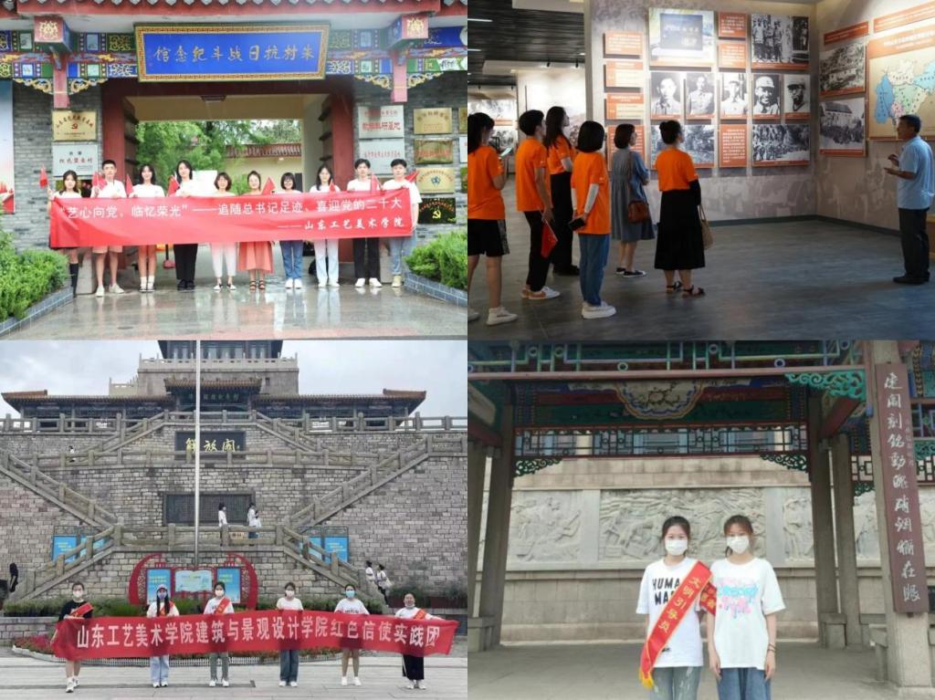 數字藝術與傳媒學院“藝心向黨、臨藝榮光”社會實踐團隊重走習近平總書記考察調研足跡,奔赴沂蒙革命老區,通過紅色研學、支教服務、實踐訪談、文藝下鄉、田間勞動、四同教育等方式傳承紅色基因,深刻感悟沂蒙革命精神,用優秀紅色文化資源賦能鄉村振興。建筑與景觀設計學院“紅色信使”社會實踐團隊,深入濟南市解放閣,參觀學習重溫那一段崢嶸歲月,熱情投入場館志愿服務,隊員們向游客講解紅色故事,撿拾景區垃圾,測量游客體溫,提醒游客出示健康碼,佩戴口罩,他們用自己的實際行動表達著對偉大革命先烈的崇敬和敬畏,傳承和發揚革命精神,以心中紅星,獻禮盛世中華。
