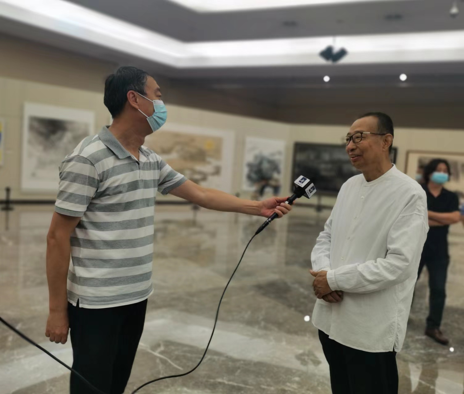 開幕式后,潘魯生參觀了展覽并接受山東電視臺齊魯頻道、書畫頻道等媒體的采訪。